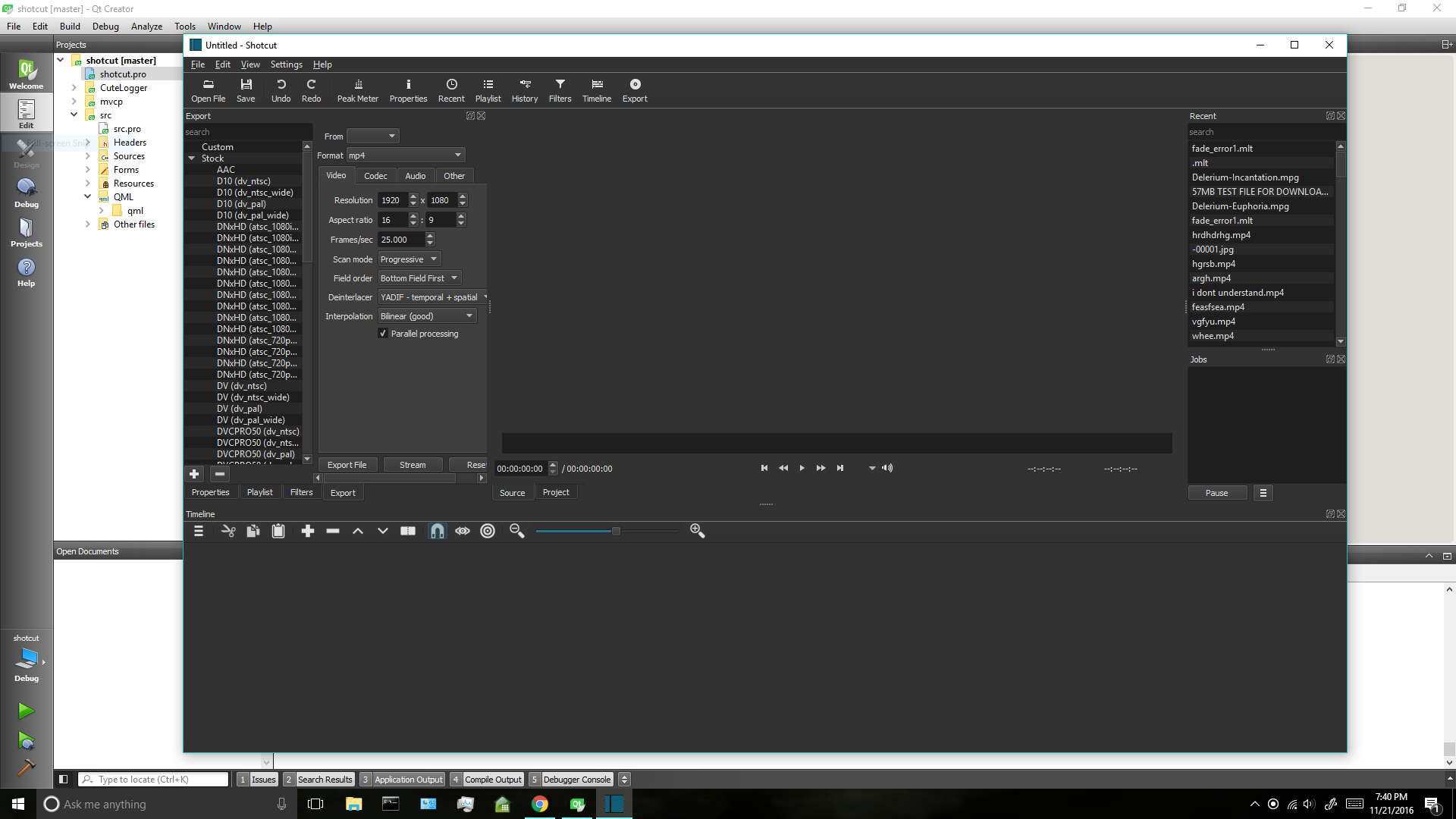 C:\Qt.tar and xz needed to extract this from msys2.)C:\ProjectsC:\ named “Projects” (C:\Projects).C:\Projects\Shotcut\src\shotcut\CMakeLists.txt.